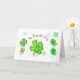 Farbenfrohe grüne und goldene Kleeblätter auf weißem Hintergrund mit den Worten St. Patrick's Day. Diese Karte ist anpassbar, um den Empfängernamen und Ihre Namen zu ändern.
