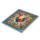 Farbenfroher, lebendiger Hahnenvogel, mediterrane Fliesen, Zitronenkunst