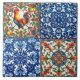 Farbenfroher, lebendiger Hahnenvogel, mediterrane Fliesen, Zitronenkunst
