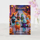 Farbenfrohe Halloween-Parade mit gestummten Charak Karte