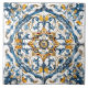 Dieses atemberaubende Display zeigt handbemalte Fliesen, die mit kunstvollen Blumenmotiven in Blau, Gelb und Weiß geschmückt sind.
