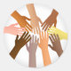 Illustration einer Gruppe unterschiedlicher Hands aus unterschiedlichen Kulturen und Nationalitäten, die sich ausstrecken und einander berühren. Konzeptionelles Design, das zeigt, wie Menschen zusammenkommen und einander helfen und unterstützen. Bilder auf verschiedenen Geschenken und Produkten erhältlich.