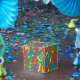 Farbenfrohe heiße Schlamassel rot-gelb-blau künstl Geschenkschachtel