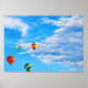 Ein lebendiges Foto, das farbenfrohe Heißluftballons einfängt, die anmutig gegen einen strahlend blauen Himmel schwebten, der mit flauschigen Wolken gefüllt ist.
