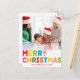 Genießen Sie die Freude und die Magie der Urlaubssaison mit dieser einzigartigen und festlichen, bunten, fröhlichen Weihnachts-Weihnachtspostkarte aus dem Foto. Das einfache, aber lustige Design zeichnet sich durch eine Rot-, Grün-, Gelb-, Blau-, Orange- und Rosa-Farbpalette aus, die eine lebhafte und fröhliche Atmosphäre schafft. Die kreative und minimalistische Herangehensweise mit fett formatierter Typografie fügt eine originelle und trendige Touch hinzu. Dieses Design ist perfekt für Kinder und Kleinkinder im Herzen und empfängt Sie in einem leichten und lässigen Ambiente. Freuen Sie sich auf die fröhliche Formulierung dieses Designs. Feiern Sie den Dezember im Stil mit diesem schönen Gruß!