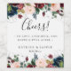 Eleganter marineblau, bordeauxrot und rot rosa, floraler Rahmen in Aquarellfarbe, personalisiertes Flaschenlabel. Labels enthalten mehrere Textlinien für Nachricht, Namen und Datum.