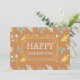 Erntedank grüßen Karte mit den Worten "Glückliches Erntedankfest" auf einem Hintergrund von bunten Herbstlauben. Fügen Sie Ihre eigene Nachricht auf die Rückseite.