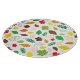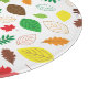 Dieses runde Schneidbrett weist ein Herbstmuster mit Blätter in Gelb-, Orange-, Rot- und Brauntönen auf.