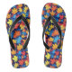 Farbenfrohe Herbstüberreste im dunkelblauen Hinter Flip Flops
