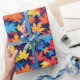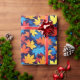 Farbenfrohe Herbstüberreste im dunkelblauen Hinter Geschenkpapier