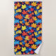 Farbenfrohe Herbstüberreste im dunkelblauen Hinter Strandtuch