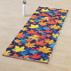 Farbenfrohe Herbstüberreste im dunkelblauen Hinter Yogamatte