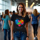 Dieser T - Shirt besticht durch ein pulsierendes Autismus-Bewusstsein-Design auf schwarzem Hintergrund. Die Zentralgrafik besteht aus bunten Puzzleteilen in Blau, Rot, Gelb, Grün und Rosa, die das Diversity und die Einzigartigkeit der Individuen im Autismus-Spektrum symbolisieren. Einige Puzzleteile scheinen vermisst oder in Bewegung zu sein, wodurch ein dynamischer Effekt entsteht. Über dem Herzen steht "Autismus Awareness" in einem schlichten, eleganten, weißen Schriftart. Unter dem Herzen wird die Phrase "Liebe, Bildung, Unterstützung und Advocate" in einem weichen blauen Skript dargestellt, das die Botschaft von Inklusivität und Fürsprache verstärkt. Das Gesamtkonzept ist auffällig, positiv und unterstützt das Autismus-Bewusstsein.
