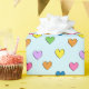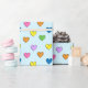 Ein Verpackungspapier mit einem farbigen Herzmuster auf einem hellblauen Hintergrund. Passen Sie die hellblaue Hintergrundfarbe unter anderen Optionen an.