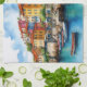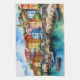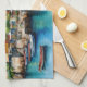 Farbenfrohe Holzboote im Hafendorf Geschirrtuch