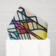 Ein schönes Jugendstil-Design, das Elemente aus Buntglas und geometrischen Linien enthält.