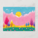 Farbenfrohe Illustrierte Natur Postcard, Dreamy Fantasy Nature Art, Pink Sky & Whimsical Trees, lebendige Fantasy Nature Szene