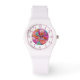 Farbenfrohe Imitate Stickereien Floral Elegant Womans Uhren bietet eine trendige farbenfrohe moderne Imitate Stickerei Blumenmuster in Rosa, lila, Orange, Blau und Gelb. Erstellt von Evco Studio www.zazzle.com/store/evcostudio