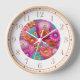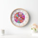 Farbenfrohe Imitate Stickereien florale Elegante Wall Clock bietet eine trendige farbenfrohe moderne Imitate Stickerei Blumenmuster in Rosa, lila, Orange, Blau und Gelb. Erstellt von Evco Studio www.zazzle.com/store/evcostudio