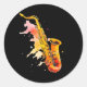 Farbenfrohe Jazz Saxophon Player Runder Aufkleber