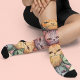 Diese farbenfrohe Sockenpaarung weist niedliche, skurrile Katzendoodles in Pastelltönen in Orange, Gelb, Rosa, Blau und Grün auf. Diese lustigen, eigenartigen Socken strahlen ein modernes Kunstgefühl aus und fügen dem Kleiderschrank eine Touch Whimsy hinzu.