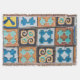 Handgemalt traditionelle mediterrane Fliesen Design. Muster der Perfektion. Geometrische Muster in Blau, Orange, Braun und Gelb. Die perfekte Dekoration, die für ein ideales Weihnachtsgeschenk, Geburtstagsgeschenk, Kinderzimmer-Dekoration, Kinderspielkunst, Wohngestaltung oder für jeden Anlass sorgt. Modernes zeitgenössisches Kunstdesign.