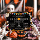 Laden Sie Freunde und Familie mit dieser farbenfrohen und unterhaltsamen Halloween-Party-Einladung ein. Set auf einem angesagten, schwarzen Hintergrund. Diese Vorlage hat einen spielerischen Rahmen mit Gespenstern, Kürbissen, Hexenhüten und Süßigkeiten. Die Kombination aus lebendigem Bundting sorgt für ein lebendiges Party-Gefühl. Machen Sie Ihre Halloween-Ansammlung mit einer Vorlage, die einfach zu gestalten und für Trick, Behandlung und Spiele perfekt geeignet ist.