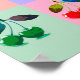 Farbenfrohe Kirschen: blau, hellblau, orange, gelb, pink, magenta, lila, violett, hellgrün, Blätter grün, olivgrün - im Pop Art Stil geschaffen. Licht, optimistisches Design. Die Rolle des Optimismus im Design - zu einer Kultur des Optimismus beitragen.