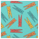 Farbiges Stoffmuster aus alten Holzkleider-Pegs auf blau