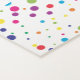 Farbenfrohe Konfetti- vielfarbige runde Punkte mit weißem und lila Hintergrund und lila Schrift