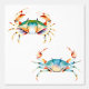 Hübsche Aquarellkunst, die ein rötlich-grün-blaues und orangefarbenes Krabbenmuster auf weißem Hintergrund darstellt.