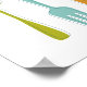 Dieser Retro-Küchenkunstdruck wird in jeder Zuhause bezaubernd aussehen, mit Küchenutensilien (Gabel, Messer und Löffel) in einer Kombination aus türkisfarbenem Blau, Avocado-Grün, Orange und Dunkelblau.