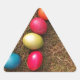 Farbenfrohe lackierte Eier im Garten, Ostereier Dreieckiger Aufkleber