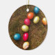 Farbenfrohe lackierte Eier im Garten, Ostereier Keramikornament