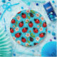 Ein nahtloses Muster mit roten Ladybugs und rosa Blume vor einem hellblauen Hintergrund. Ideal für Stoffdesigns, Tapeten und naturgetreue Dekorationen. Lebhaftes und fröhliches Design für vielfältige Anwendungen.
