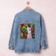 Farbenfrohe Lama umgeben von Blume Jeansjacke