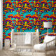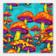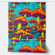 Farbenfrohe psychedelische Pilze in blauen, orangefarbenen, lila und gelben Stick und abziehbaren Tapeten.