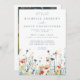 Dieses Design zeichnet sich durch eine lebendige Wildblumen in Rot-, Gelb-, Grün-, aquamarin- und Blautönen aus. Ideal für lässige Hochzeiten.