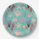 Farbenfrohe Aquarellbilder von Muscheln und Unterwasser-Pflanze-Leben schaffen ein Muster auf aqua Hintergrund