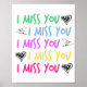 Farbenfroh vermisse ich deine Texte mit dekorativen Herzen und Vögeln für liebende Menschen, die ihre Lieben vermissen und will dieses Design geben, um ihnen zu zeigen, sie sind so viel Farben vermisst, verwendet Green Cyan Lila Yellow und Pink.