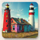 Farbenfrohe Leuchttürme am Strand Getränkeuntersetzer