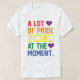 Mit unserem T - Shirt "Eine Menge Stolz geht im Moment" zeigen Sie Ihre wahren Farben - das perfekte LGBTQ+-Shirt zum Feiern von Liebe, Gleichheit und Selbstausdruck. Mit seiner bunten Typografie und seinem Herzdesign eignet sich dieses vibrierende Tee ideal für den Pride Month, Paraden, LGBTQ+ Veranstaltungen oder den alltäglichen Gebrauch. Aus Komfort und Sichtbarkeit gemacht, ist es ein Statement, das es laut und stolz sagt. Ideal für schwule, lesbische, bisexuelle, quee, transgender und verbündete Gemeinschaften.