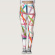 Diese Leggings haben ein geometrisches Design verstreuter Linien in Blumenfarben - Rosa-, Orange-, Gelb-, Blau- und Grüntönen.