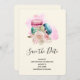 Farbenfrohe Macarons und Blume Wasserfarbe Geburts Save The Date