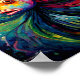 Das Bild zeigt ein lebendiges und farbenprächtiges Gemälde eines Fisches mit übertriebenen Merkmalen. Der Fisch hat große, ausdrucksstarke Augen und seine Waage zeigt eine Vielzahl von Farben wie Orange, Gelb, Blau und Grün. Es hat fließende Flossen, die an Pinselstriche in verschiedenen Blautönen, Grün, Rosa und lila erinnern. Der Hintergrund ist dunkel mit Blau- und Grüntönen, was einen Kontrast schafft, der den Fisch auffällig macht. Weiße Flecken verteilen sich über den gesamten Hintergrund und deuten auf Blasen oder Sterne hin. Das Kunstwerk ist mit dynamischen Wirbel rund um den Fisch stilisiert, die das skurrile Ambiente des Gemäldes noch verstärken. Perfekte Zuhause und Office Deko0ration.