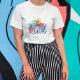 Dieser niedliche T - Shirt ist mit einem knechten Herz und einer farbenfrohen Farbspritze in Blau, Gelb, Rosa und Grün ausgestattet, und mit einem trendigen Text, der lautet: Sei freundlich.