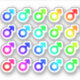 Viele niedliche, kleine, regenbogenfarbene männliche Geschlechtersymbole.