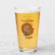 Dieser Glaskrüber für Getränke hat einen bunten männlichen Truthahn mit einem ausgefeilten Schwanz stehend in einem Haufen von Herbst farbigen Blätter. Passen Sie Ihren Text mit der Vorlage an.