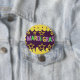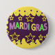 Dieser Button zeigt ein lebendiges Design eines Banners, das die Worte Mardi Gras in den Farben Mardi Gras auf einem gelben Hintergrund trägt. Ideal für Mardi Gras Feiern und Partys.
