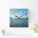 Farbenfrohe Mauer. Quadratische Wanduhr